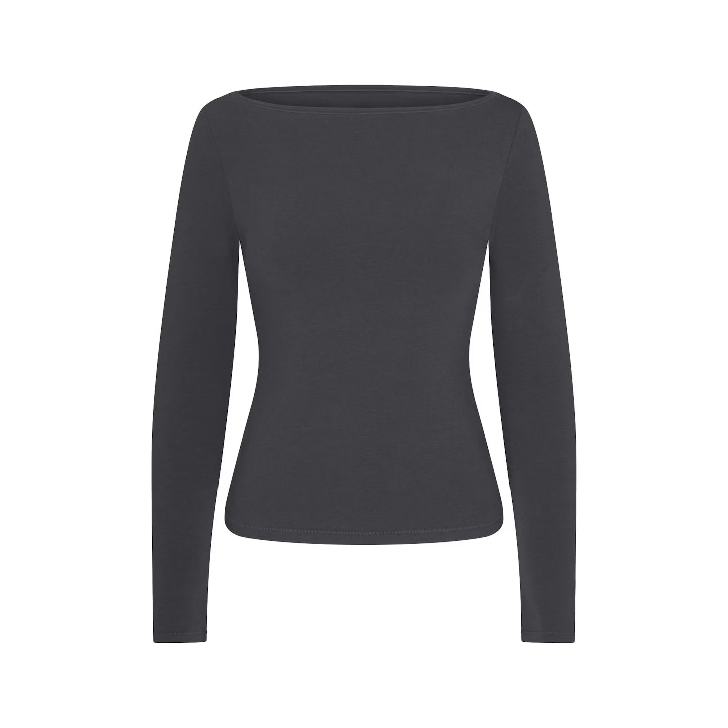 The top that makes lounge look put together. This black boat neck hugs in all the right places while keeping things comfortable. The neckline gives that effortless “model off duty” vibe.